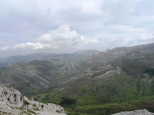 ...y aquí abajo, al Sur de la cumbre el valle de Babia brumoso, con los montes del Alto de la Cañada, Rabinalto y otros de la zona de Riolago de Babia bajo las nubes.