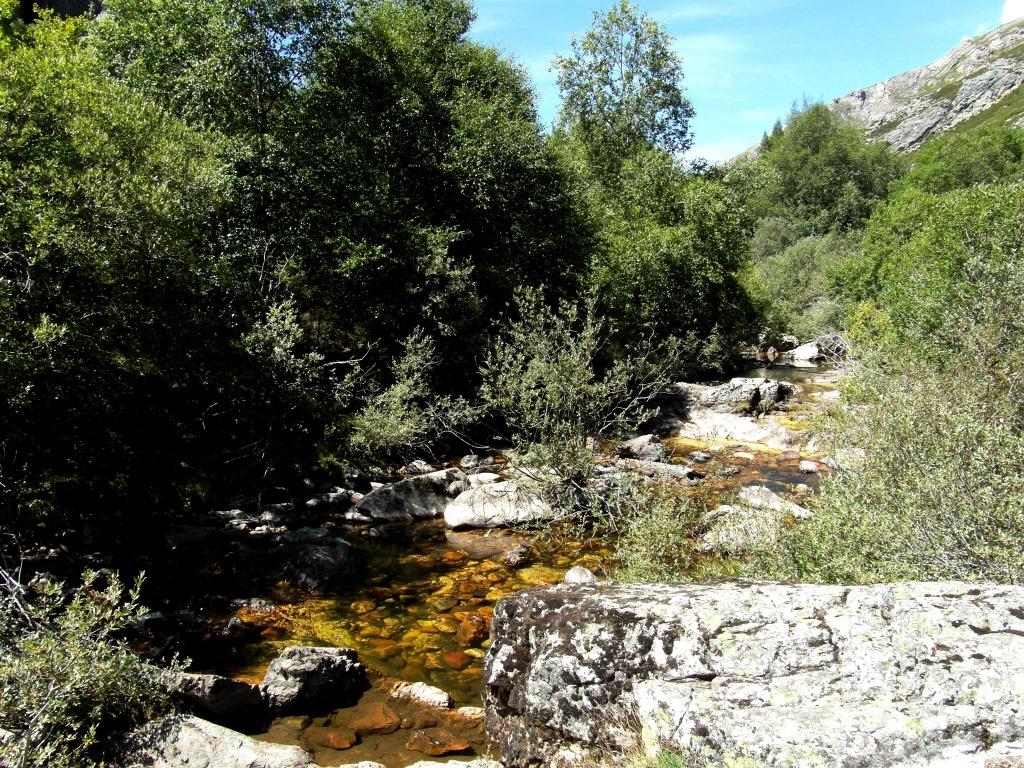 Es un guapo rincón este, con bastante agua a pesar de ser mediados de agosto; lástima que el río, que ya baja desde San Isidro e Isoba tenga esa turbidez que no invita al baño.