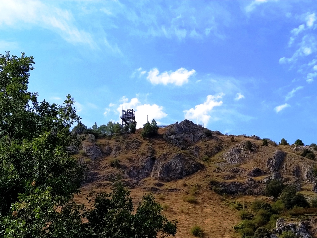 Continuando la ruta vemos frente a nosotros un cuarto mirador, que parece desde aquí el final de un teleférico que transportase en cangilones material de las minas.