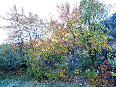 ... bajando entre las escobas y los brezos y con los pocos abedules ya otoñales iluminados por el sol, que dan un variado colorido a las hojas.